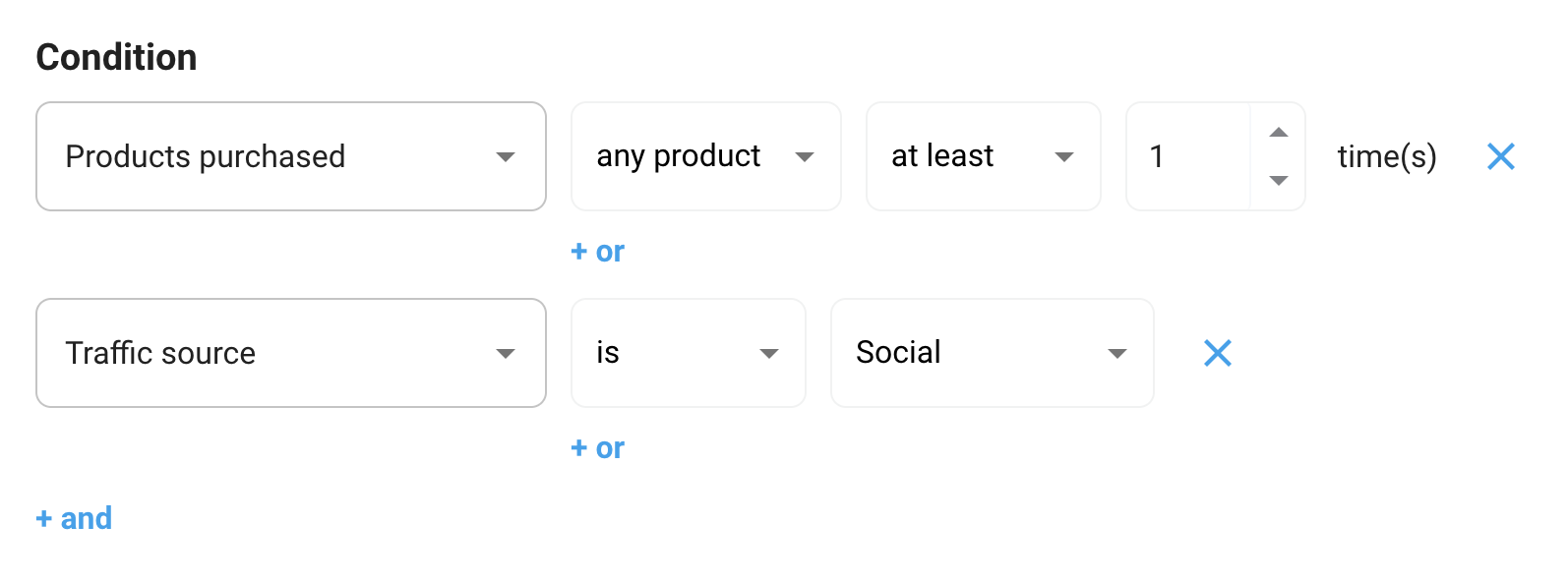 Вы можете комбинировать условия, чтобы создавать точные сегменты пользователей.
