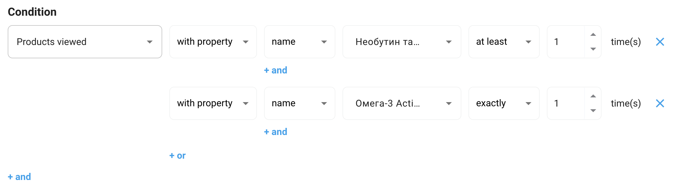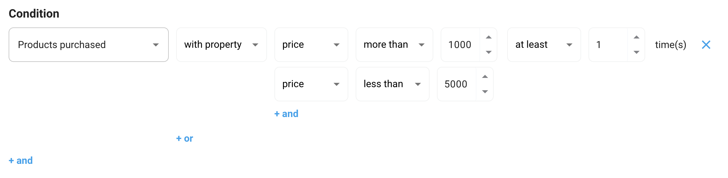 Вы можете комбинировать условия, чтобы создавать точные сегменты пользователей.