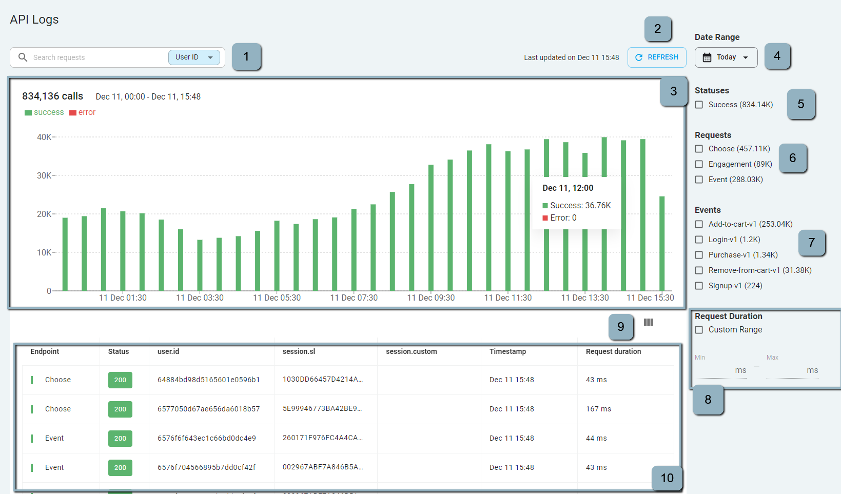 - Фильтрация логов по эндпоинту, на который были отправлены запросы.Среди доступных вариантов есть только те эндпоинты, на которые отправлялись запросы в выбранном временном диапазоне.