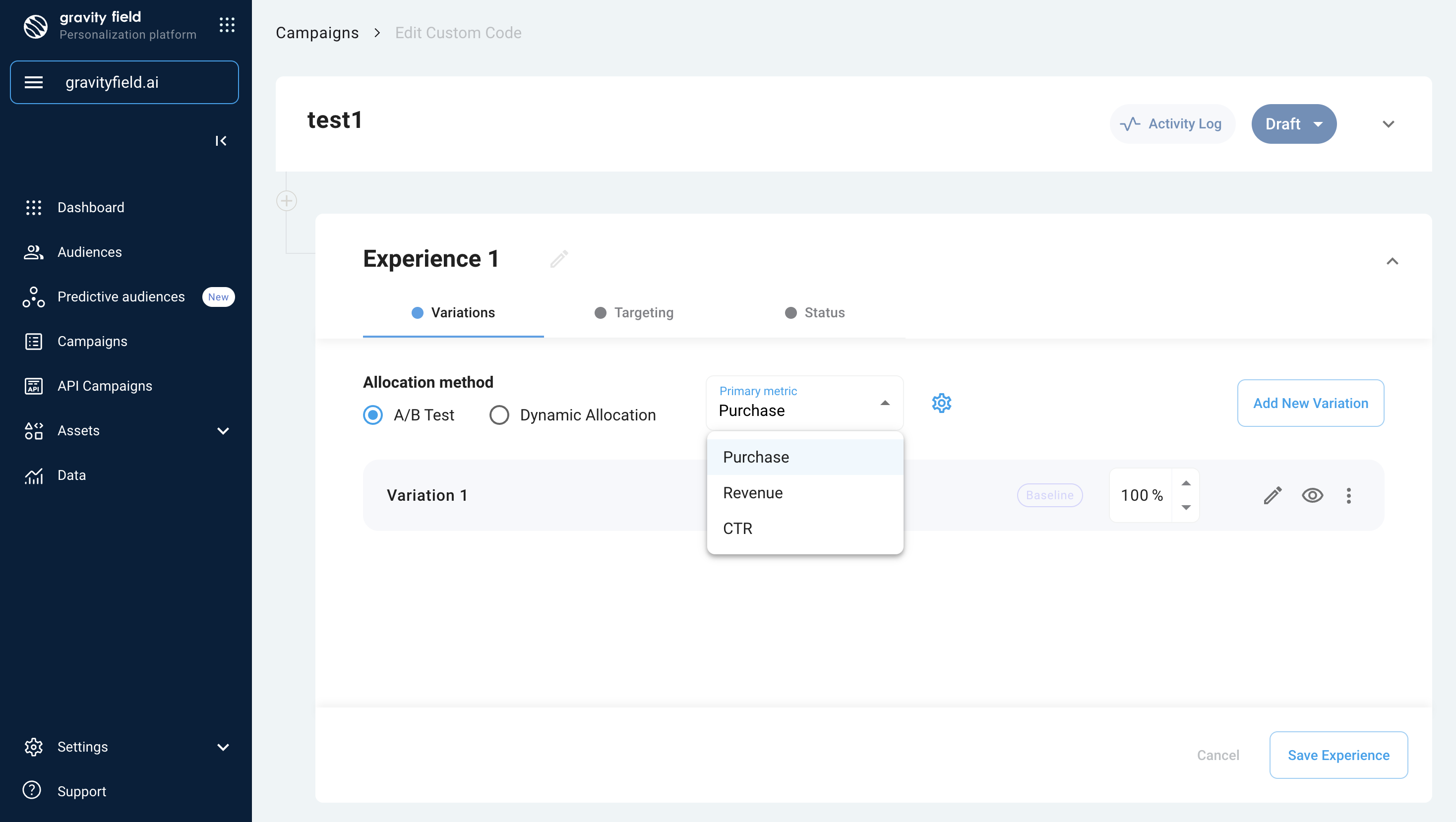 Выручка (Revenue) не всегда является идеальной метрикой, даже для e-commerce сайтов. Мы рекомендуем выбирать основную метрику, связанную с гипотезой вашего опыта и этапом воронки, на котором он находится. Примеры: