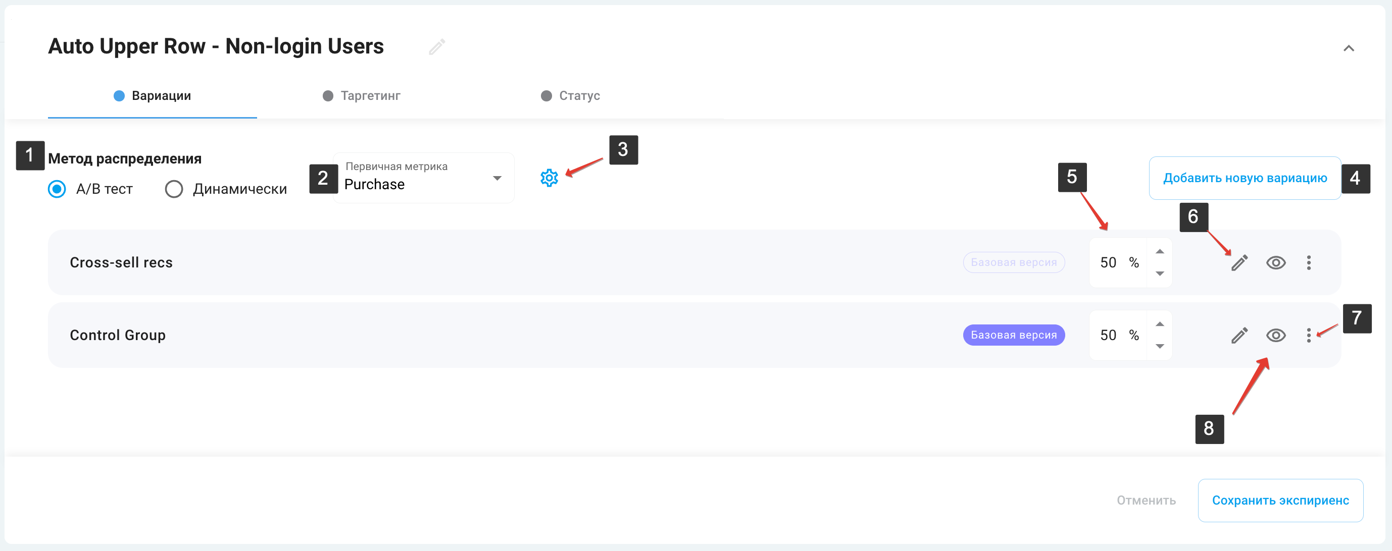 Один сценарий может содержать несколько вариаций, которые можно тестировать между собой.