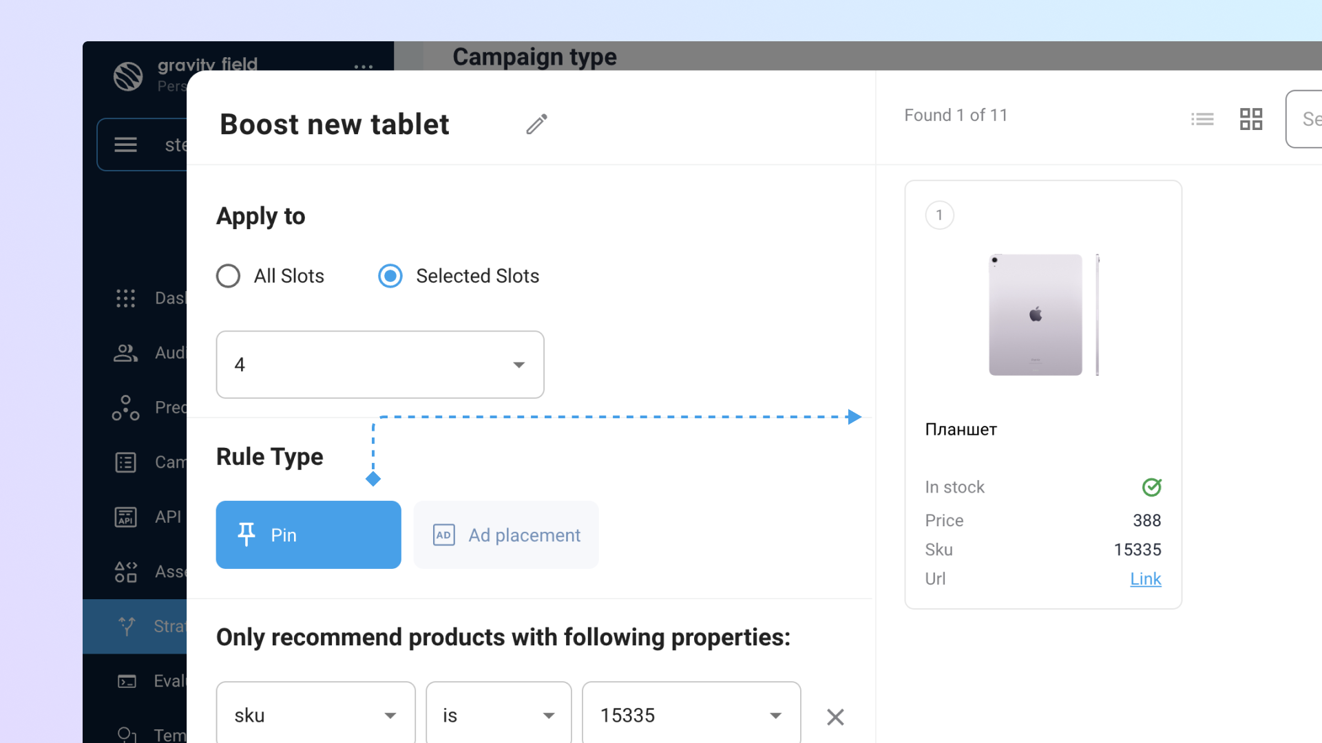 🛍 Персонализация листинга товаров (PLP) в Gravity Field