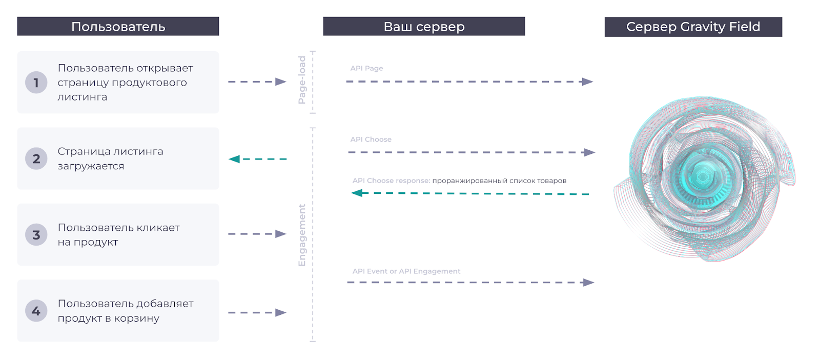 Также потребуется настроить API-кампании и реализовать вызовы choose, engagement, page.