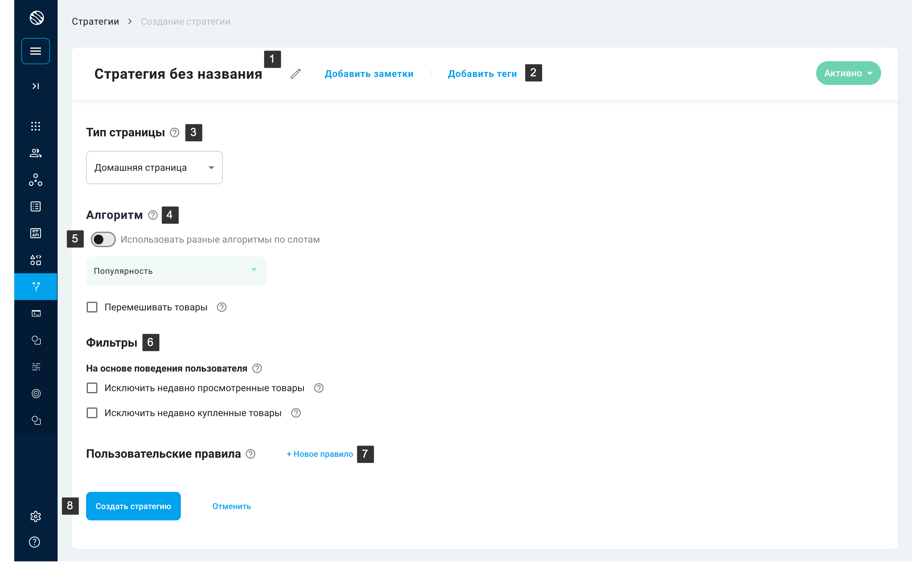 Сохраните стратегию. После сохранения она станет доступна для выбора в рекомендательных кампаниях.