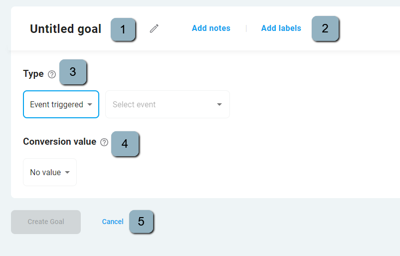 При нажатии на кнопку “Create Goal” вы попадете на страницу создания цели.