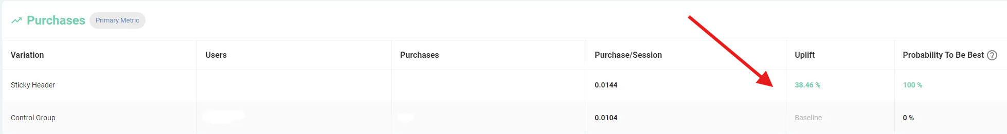 Посмотрите на значение в колонке Probability to be best у тестовой вариации - она говорит о том, с какой вероятностью та или иная вариация показывает наилучший результат.