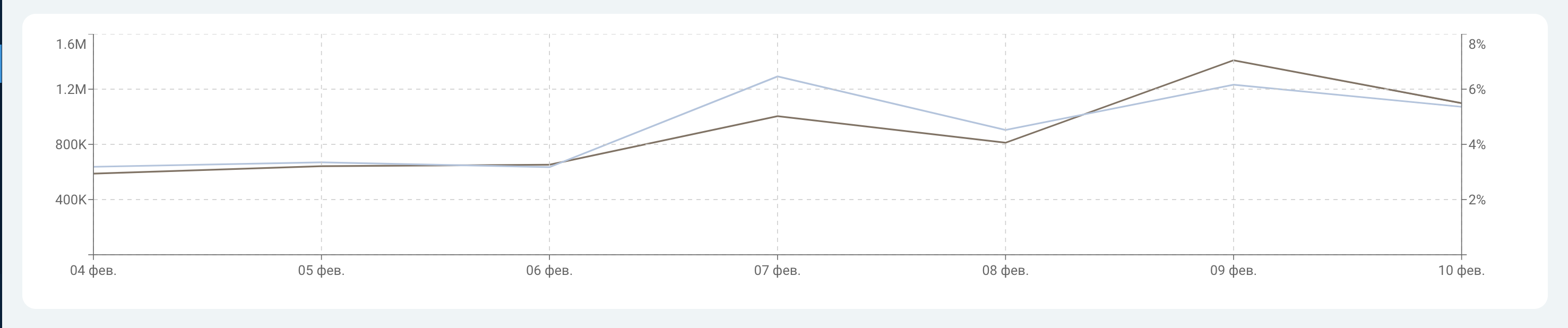 Сразу после сводки расположен график по дням, отображающий динамику выбранной метрики.